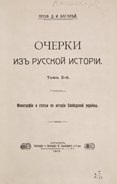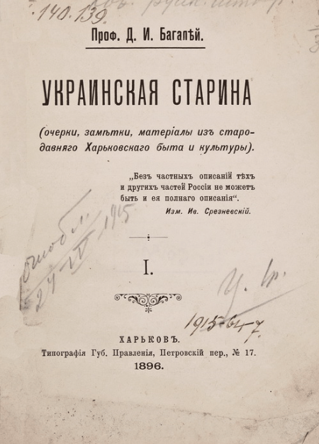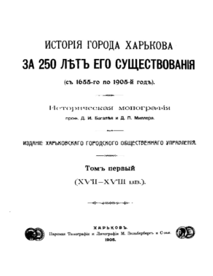 Є автором понад 400 праць з історії України, в т. ч. монографії «История города Харькова за 250 лет его существования» (у співавторстві з Д. П. Міллером).
