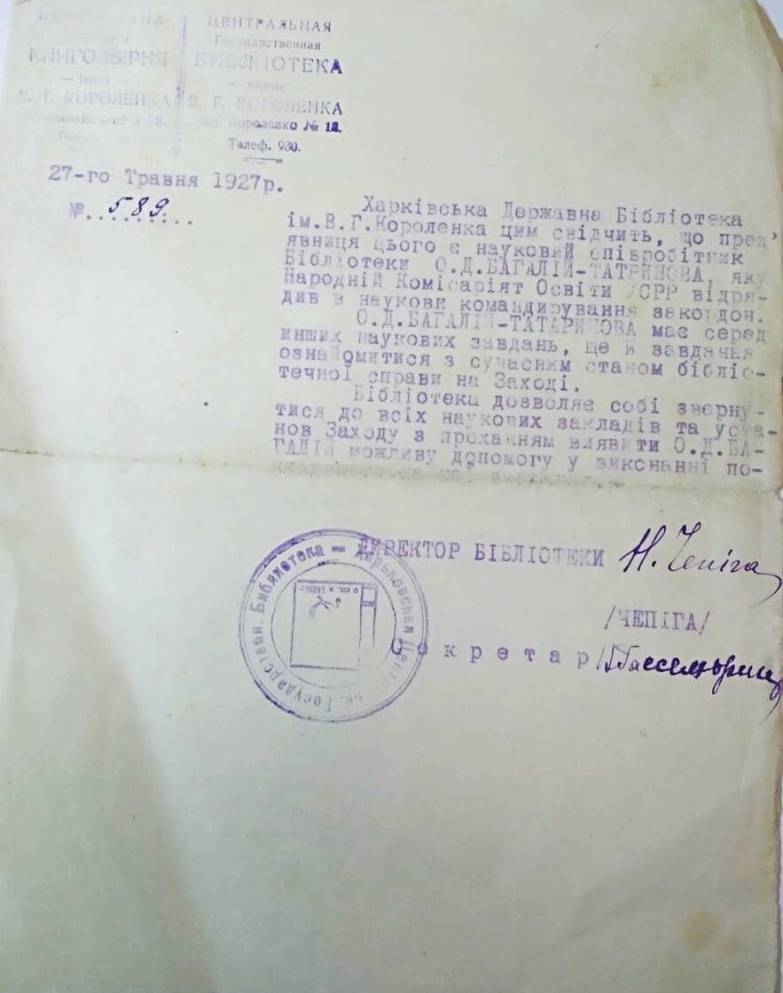 «Ваша праця, Ваше вміння залучити пожертвування, співробітників перетворили Харківську громадську бібліотеку на великий просвітницький центр. Ви заклали підґрунтя рукописному відділу бібліотеки, при Вас було покладено початок спеціалізації відділів бібліотеки: бібліотекознавчого, музичного, українського, польського, гебраїки і іудаїки, нарешті при Вас відкрито було два її філіальних відділення. Ви завжди стояли і стоїте на сторожі інтересів Бібліотеки, як просвітницької установи, розумно керуючи ходом діяльності правління…. Усяке клопотання, усякі клопоти Ви завжди готові прийняти на себе для процвітання Вашого улюбленого дітища – Бібліотеки. Завжди спокійний, неупереджений, найвищою мірою колегіальний, Ви усіх прагнете примирити однією загальною метою – працею на користь громадської бібліотеки. Ця Бібліотека – прекрасний пам’ятник Вашій громадській діяльності….»